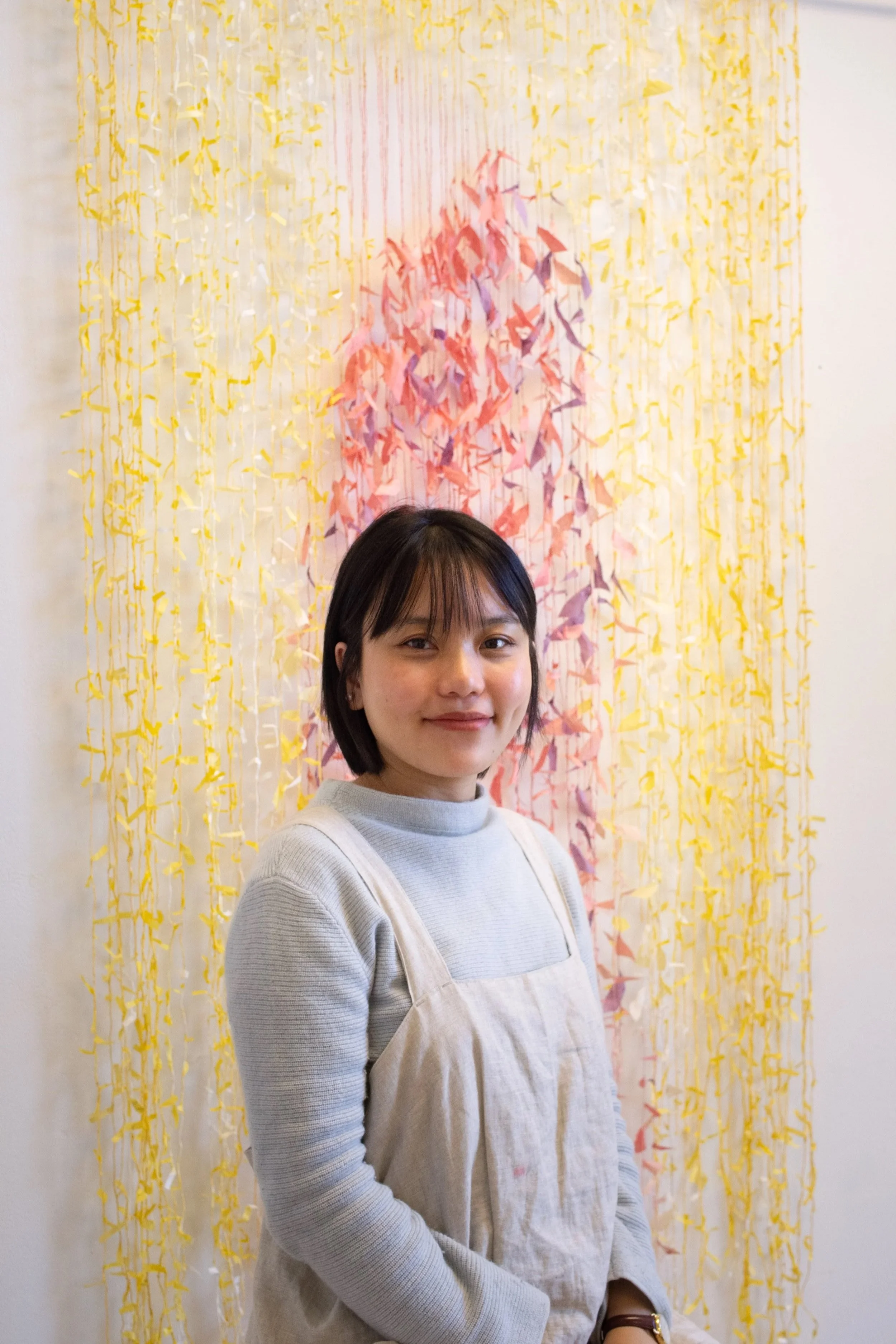 She is a textile artist based in NYC. As a former award-winning journalist from China, she tells stories about human relationships, gender, immigration, and language through her distinctive figurative weaving, made with hand-spun paper yarn and collages of paper and fabric. She graduated with an MFA in Textiles at Parsons School of Design in 2023 and a BA in journalism in 2014.